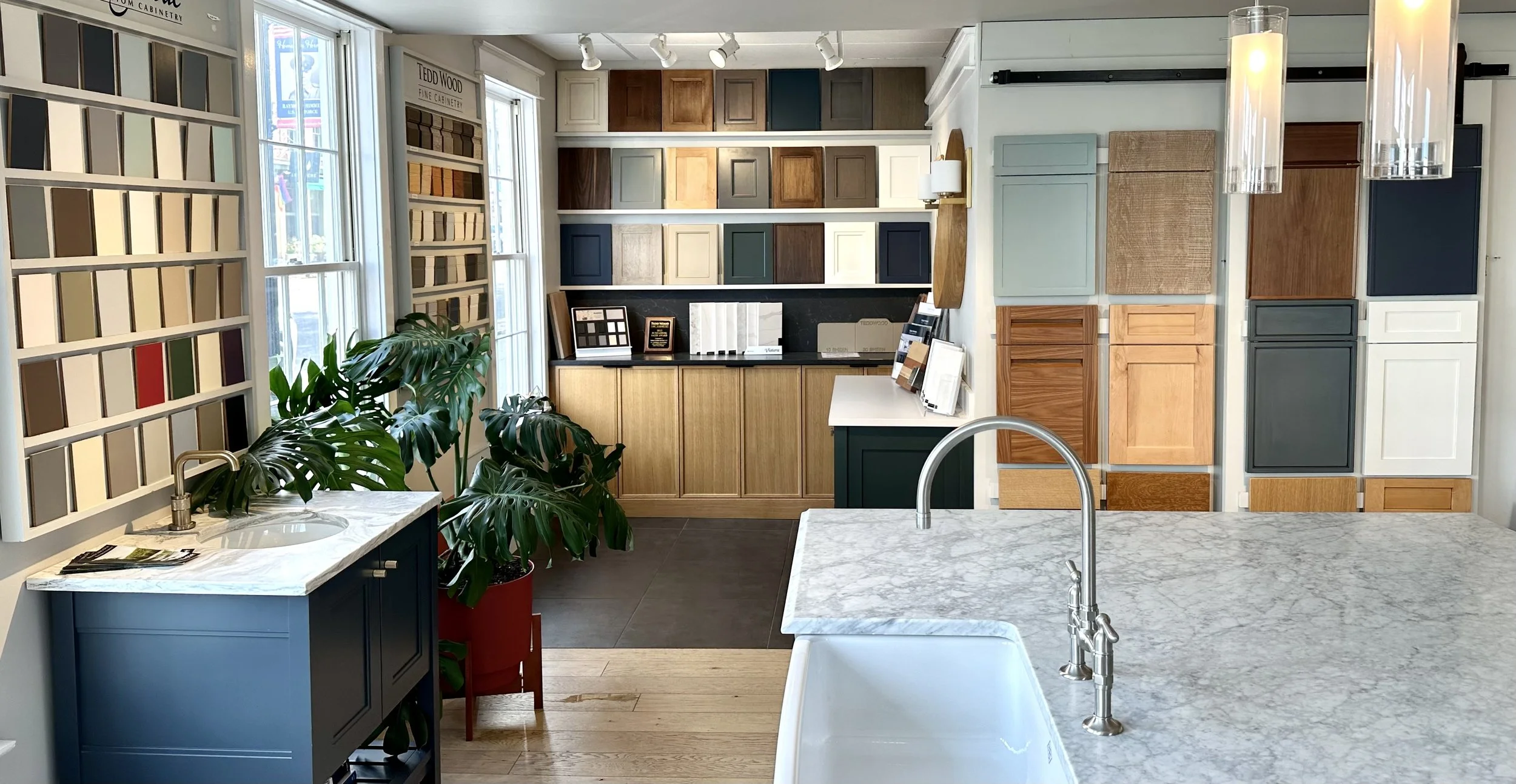 Our showroom is not just a showcase of our offerings, it is a place for you to explore possibilities. We invite you to come and play with color and finishes, grab hold of hardware, open doors and drawers and peruse through a wide variety countertop materials. In addition to being conveniently located on Warren Street, we share our showroom space with Ackerman’s Appliance providing you with a One-Stop-Shop destination for your renovation needs.